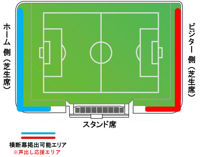 両チームゴール裏芝生席でのみ使用可(掲げる、振る等)