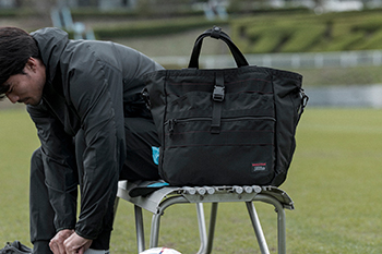 大きさのある荷物も楽々収納できる大容量のメインルームに加え、底部分にはメインルームと分けてシューズやペットボトルが収納できるポケットも装備しています。普段使いはもちろん、スタジアム観戦や遠征にも最適なデザインとなっています。