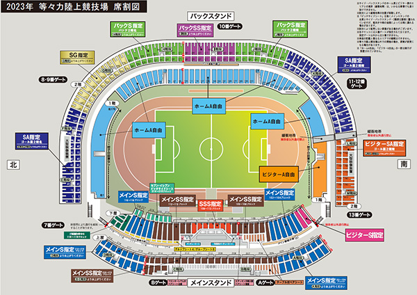 ビジターS指定、ビジターSA指定、ビジターA自由がビジターサポーターのエリアとなります。
