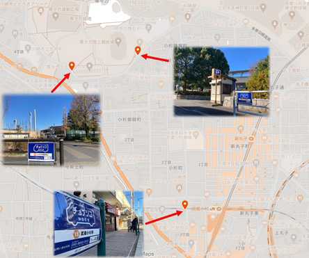 餃子の王将 武蔵小杉店→等々力陸上競技場フロンパーク前→等々力陸上競技場10番ゲート前