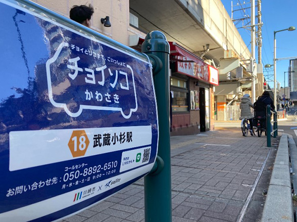「チョイソコかわさき」とは、2022年11月より始まった予約型デマンド交通サービス。「チョイソコかわさき」は中原区を中心に約 120の停留所を設置しており、事前登録すればLINE予約もしくは電話予約にてどなたでもご利用可能です。