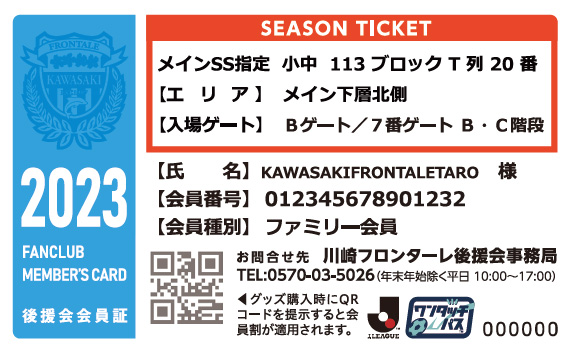 2月上旬に送付いたしました席種・席番の記載されたシーズンチケットの情報シールを、必ず2023後援会会員証の裏面に貼ってください。