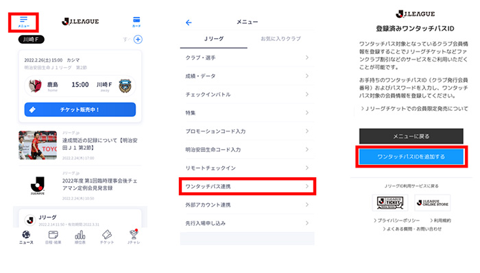 ②Jリーグ公式アプリ「Club J.LEAGUE」内のデジタル会員証で入場する
