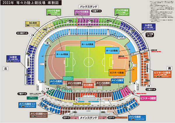 ビジターS指定、ビジターSA指定、ビジターA自由がビジターサポーターのエリアとなります。