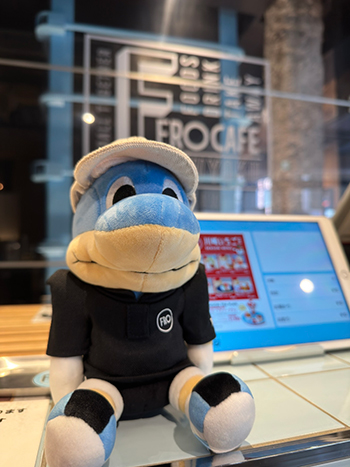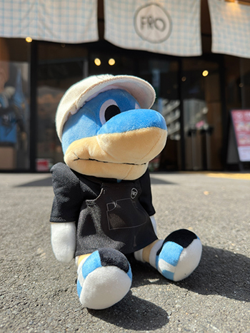 ありそうでなかったFRO CAFEスタッフウェアを着た“おすわりふろん太ぬいぐるみ”を販売いたします。ポロシャツ、エプロン、キャップの3点セットです!