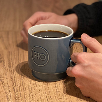 落ち着いたブルーの色味は日常で使うにはピッタリの1品です。岐阜県の美濃焼で一つ一つ丁寧に製作しております。手作業による製作の為、FROロゴに若干の個体差があるのも良さの一つです。