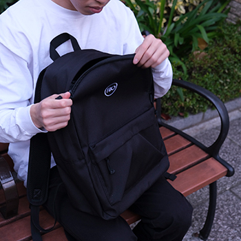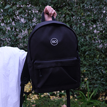 ゆったりとしたシルエットでシンプルながら収納力もたっぷりとある使い勝手の良いFROデザインのバックパックです。FRO部分はホワイトの刺繍で仕上げました。