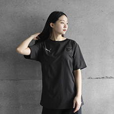 ULTRAWEAVEを用いた4WAYストレッチ素材で、自由な動きと快適な着心地が特徴の半袖Tシャツです。選手の移動着として採用されており、『PUMA×FRONTALE アルティメットトレーニングトップ』とのセットアップがおすすめ。