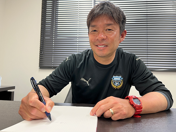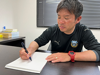デザインもOnikiの文字の“○(丸)”に鬼木監督直筆の「達」(とおる)を書いてもらいました。