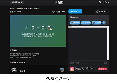 今シーズンもフロンターレアカデミーの選手たちの戦いぶりをタイムリーに皆さんにお届けするため、スポーツライブエンターテイメントアプリ「Player!」にて試合速報を実施します。