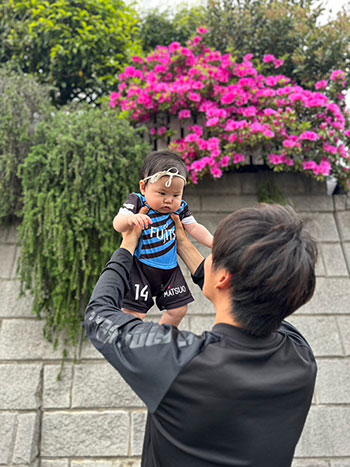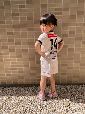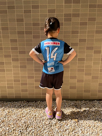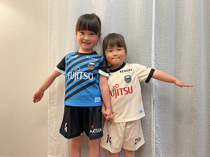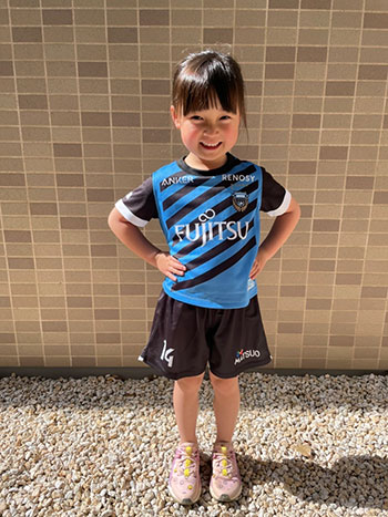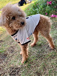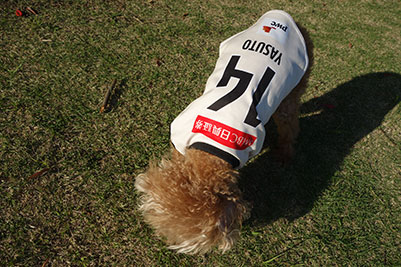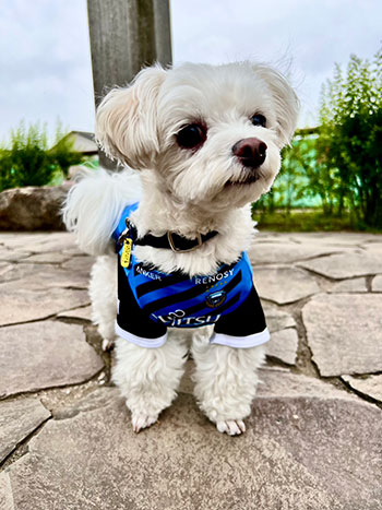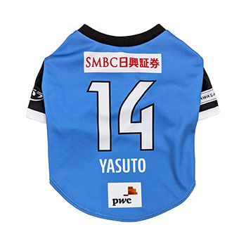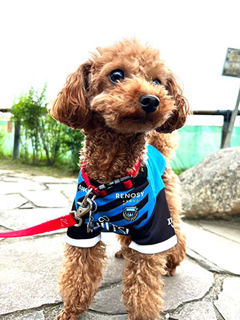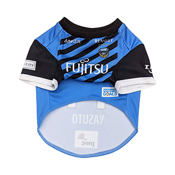 愛犬にお気に入り選手のネーム・ナンバーが入ったウェアを着せこみ、フロンターレファミリーの一員に!