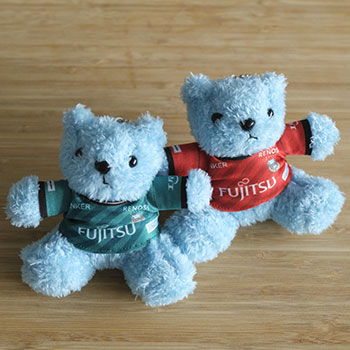 ベアといつでも一緒にいたい...。というフロンターレサポーターの夢が叶った人気のキーホルダー。フロンターレブルーに染まったベアを使用しています!
