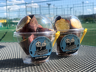 川崎フロンターレが運営しているフットサル施設「フロンタウンさぎぬま」で販売している「冷やし焼きいも」を、等々力で販売!! 天然のスイーツともいわれている“紅はるか”を冷やし焼きいもでご提供! 紅はるかはねっとりしつつ滑らかな口当たりで、濃厚な蜜がでるほど高い糖度をもった品種です。