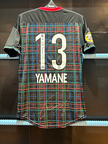 今回は「夢は心のプロテイン」という座右の銘を、本人直筆で背番号部分に書いてもらいました! さらにさらに、「山根視来選手直筆サイン入り実使用スパイク」も当たるかもしれません!
