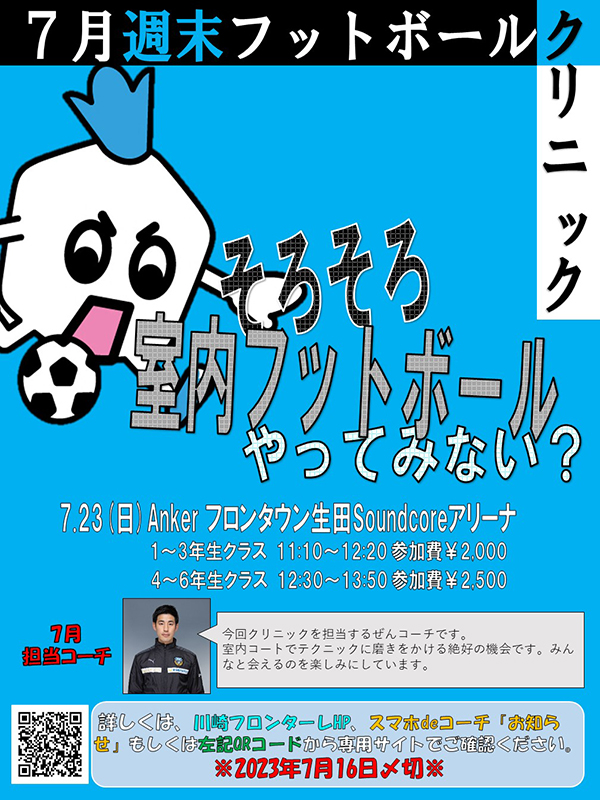 川崎フロンターレ「週末フットボールクリニック7月(小学生)」係