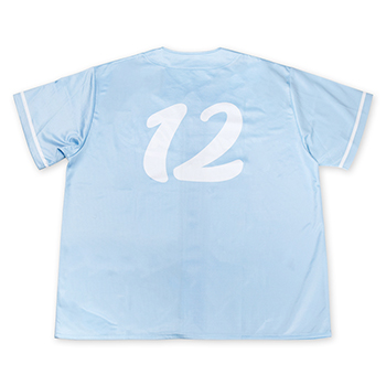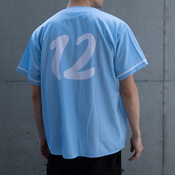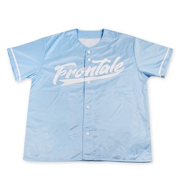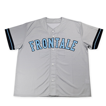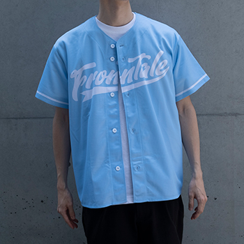 落ち着きのあるグレーにフロンターレブルーを差し色にしたデザインと、淡いフロンターレブルーが夏らしさを感じさせる2デザインを展開します。前開きなので化粧や髪型の崩れがなく、サッと着られるものベースボールシャツのポイントです。