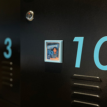 フロンターレブルーの額に囲われたようなイメージのマグネットフレームです。お気に入り選手デザインをペタッと冷蔵庫やロッカーなどに貼りつけましょう!