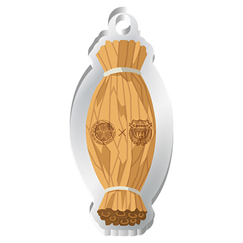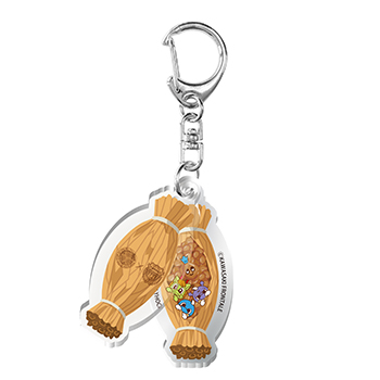 パッと見たときはお互いのエンブレムがデザインされた藁のキーホルダーですが、隠れた2枚目のアクリルには藁の中に隠れたマスコットたちが見えてきます!