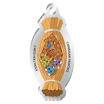 水戸名物の“納豆”をイメージしたコラボグッズを販売いたします! すーっと伸びる納豆の糸から、kawasakiとmitoの文字がデザインされています。あと...。毎度のことながらカブレラは変幻自在に納豆に変身しています...。