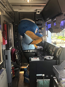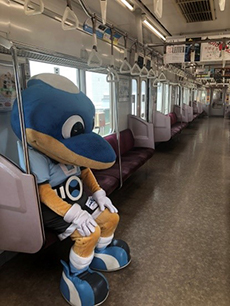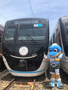 ・並んだ電車の前でマスコットキャラクターと記念撮影!!