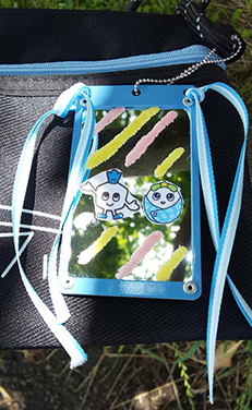 | 内容 | ミラー名刺にシールやカラーサンドを使って 世界に一つだけのオリジナルキーホルダーを作ります。 |