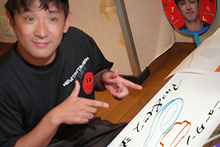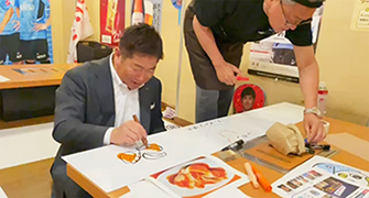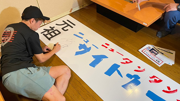 ①齋藤学選手自ら手書きした「元祖ニューサイトウマナブ本舗」メイン看板設置