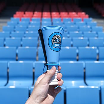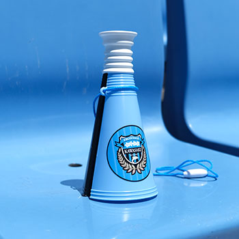 「パンパン!パンパン!!」と心地よい音を奏でるメガホンは小さなサポーターに大人気のグッズです!