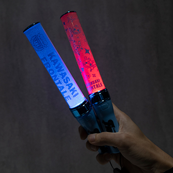 皆様の熱い思いを「色」で表現できる人気グッズのペンライトを、仕様を新しくして発売します。どなたでも使いやすいベーシックなデザインから、ペンライトを持ったマスコットたちがデザインされた2種類展開です。グリップ部分もフロンターレブルーになった特製モデルになります!