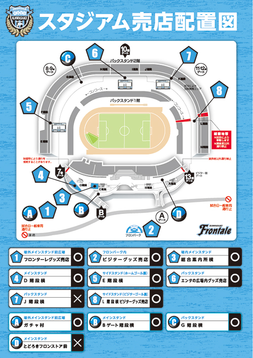 | 注意事項 | ・FC東京デザインは川崎フロンターレ側での販売はございません。詳細はFC東京オフィシャルホームページにてご確認ください。 ・当日完売しなかった場合、川崎フロンターレオフィシャルWEBショップ「AZZURRO NERO」にて販売予定となります。 |
