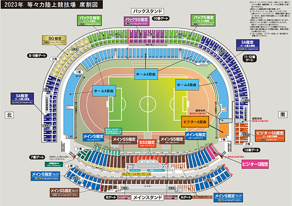 ビジターS指定、ビジターSA指定、ビジターA自由がビジターサポーターのエリアとなります。