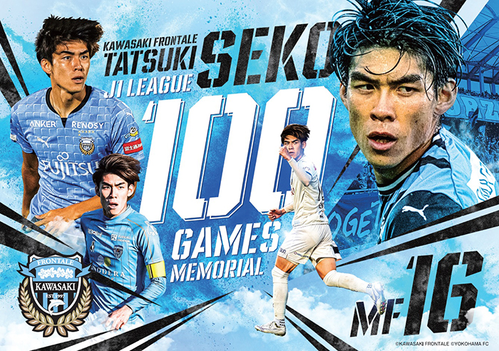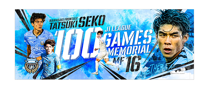 川崎フロンターレでは、9月15日(金)FC東京戦にてJ1通算100試合出場を達成したことを記念して、瀬古樹選手「J1通算100試合出場メモリアルグッズ」を川崎フロンターレオフィシャルWEBショップ「AZZURRO NERO」にて受注販売することとなりましたので、お知らせいたします。