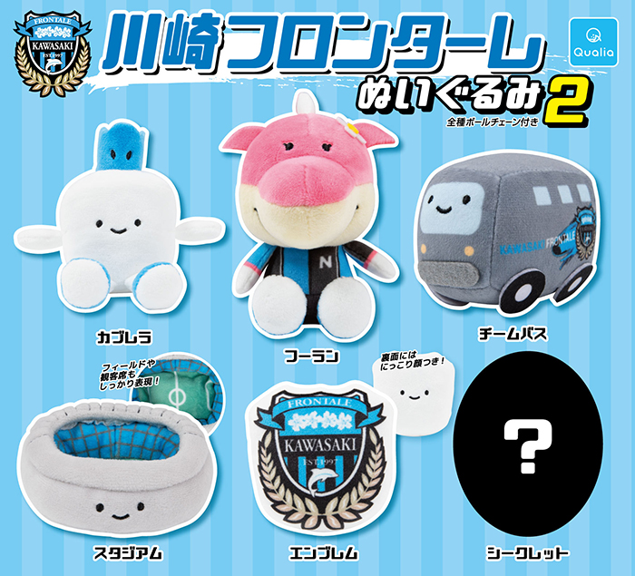 人気のぬいぐるみキーホルダーシリーズに新ver.が登場です! カブレラやフーランのマスコット以外にも、選手バスや等々力陸上競技場をイメージしたスタジアムがぬいぐるみになりました!! ボールチェーン付きなので、カバンにつけて持ち歩きましょう。シークレットは皆さんお察しの通りあの方が金...。色...。に。