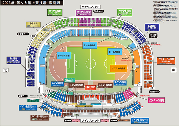 ビジターS指定、ビジターSA指定、ビジターA自由がビジターサポーターのエリアとなります。