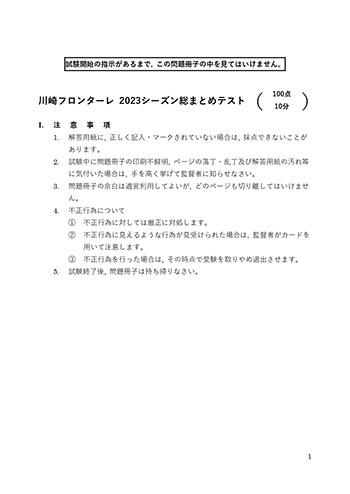 | 内容 | ・2023シーズンのフロンターレに関する100点満点の問題に解答。 ・参加賞に加え、成績優秀者(80点以上)には別途景品をプレゼント! |