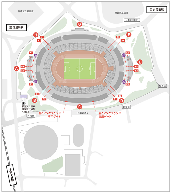 天皇杯決勝当日の入場ゲートは以下のとおりの設定となります。