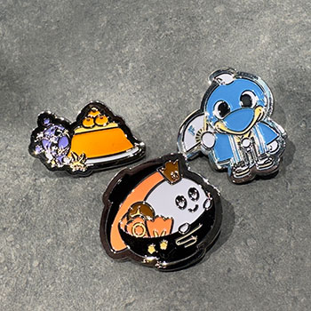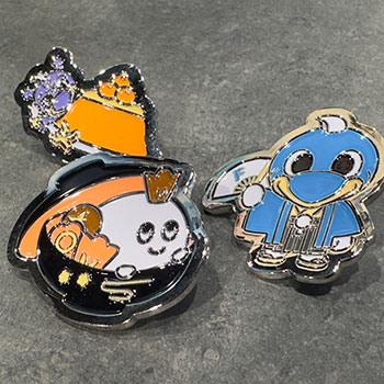 マスコットたちそれぞれのお正月をイメージしてデザインしたピンバッジです! ふろん太、カブレラ、ワルンタの中から2つを選んでいただきプレゼントになります! カブレラのお餅美味しそう...。