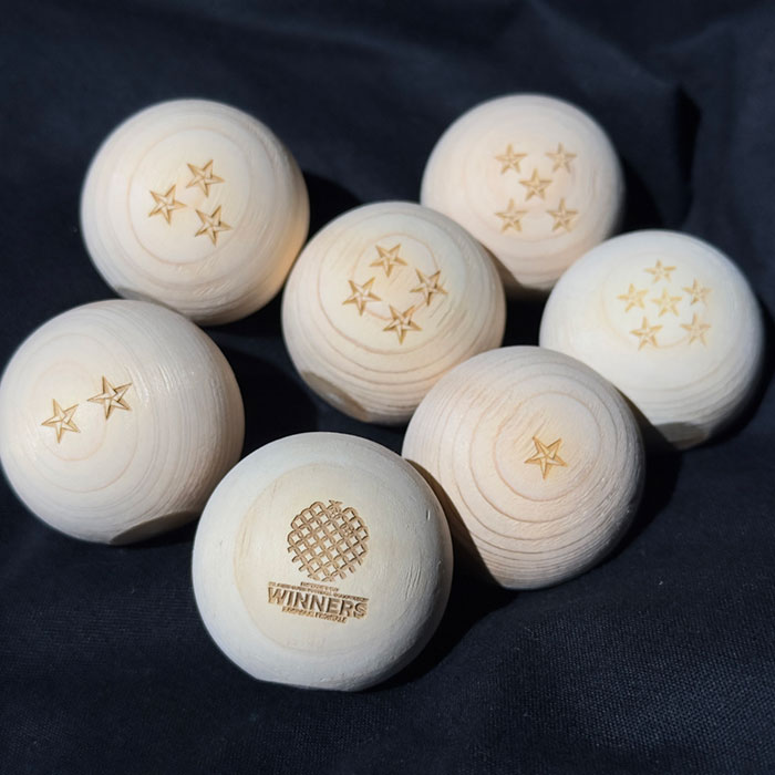 決勝でも使用されているボールに優勝記念ロゴやエンブレムなどを入れたミニボールになります。