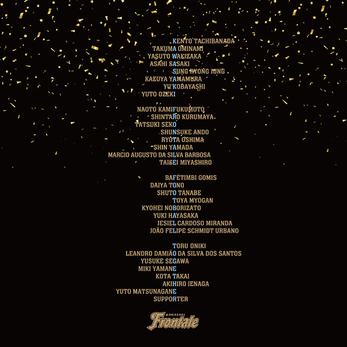 キラキラとセレモニーテープが舞っている下には、優勝記念ロゴと選手・監督・サポーターのネームをデザインしました。
