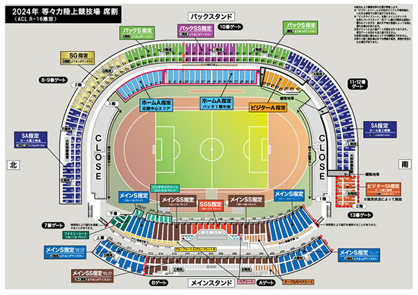 ※ゴール裏1階(北側、南側)は閉鎖となります。