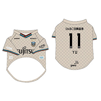 愛犬にお気に入り選手のネーム・ナンバーが入ったウェアを着せこみ、フロンターレファミリーの一員に!