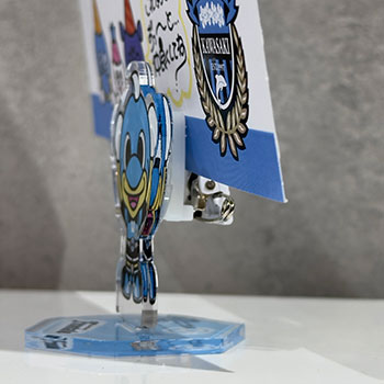 マスコットの背面に取り付けられたクリップでメモを挟めば、まるでマスコットたちがメモを持ってくれているように見えるメモスタンドです。一生懸命に腕を伸ばしているデザインがポイントです!