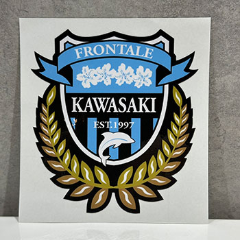 シンプルなエンブレムデザインのステッカーは、パソコンや冷蔵庫などにペタッと貼ってフロンターレ愛をアピールできるグッズです!