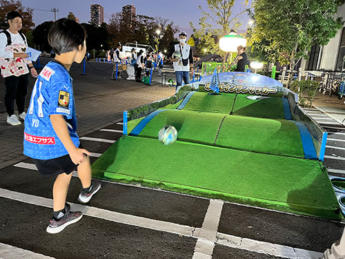 フロンパークではおなじみの大人気アトラクション、ホールインワンサッカーが今回も登場。