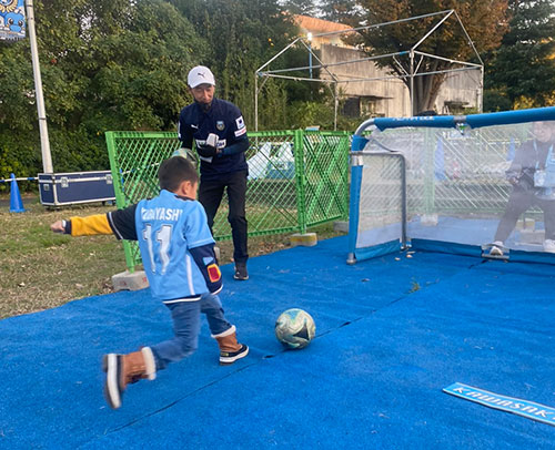 | 受付方法 | 参加券販売ブースにて、15:00より参加券の配布を開始 ※先着50名(どなたでもご参加いただけます) ※「ホールインワンサッカー」「シュートスピードチャレンジ」「ドリブルチャレンジ」のうち、いずれかの参加券を購入された方のみが対象となります。 ※参加券をお持ちの方は16:05に「シュートスピードチャレンジ」エリアまでお集まりください。 |