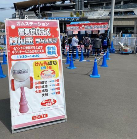 LOTTE雪見だいふくけん玉ブースチャレンジを、2024年もLOTTEさんにご協力いただき実施します!! けん玉にチャレンジし、結果に応じてLOTTE商品や複数個のガムをゲットすることができます。けん玉に失敗しても、参加していただいた方には必ず1個プレゼントします。