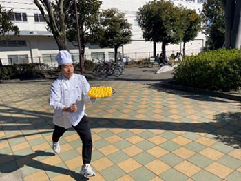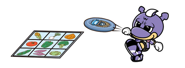 | ルール | ・1人3投チャレンジ。 ・野菜の書かれた盤面にフリスビーを投げよう! ・指定された料理の食材を集めて、料理を完成させよう! ・集めた食材の数に応じて、トレカをプレゼント。 |