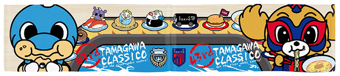 「美食クラシコ」と銘打った第43回の多摩川クラシコに合わせてデザインに!! ふろん太がもぐもぐするのは、FC東京新オリジナルグルメの「東京ドローナッツ」。軍艦巻きの上で食べ過ぎて眠るカブレラはいくら何でもやり過ぎですね...