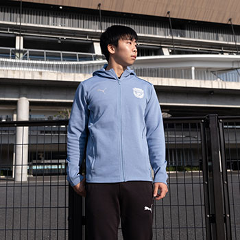 エンブレムとPUMAロゴを同系色にして普段使いしやすいデザインにしました。試合日は選手と同じ移動着を着てUvanceとどろきスタジアム by Fujitsuへ!!