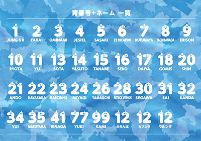 ※背番号12 [パーソナルネーム] を選択すると、ご自身のお名前など、フリーワードで指定できます。(ひらがな、カタカナ、半角英大文字、8文字まで可/漢字は不可。また、ひらがなとカタカナを混ぜることはできません)