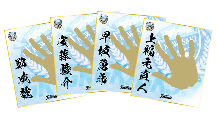 ゴールキーパー陣の手形をゴールドにしてデザインした、オリジナルの色紙です。数々のピンチをその手で救ってきた守護神たちの色紙をGETしよう!!